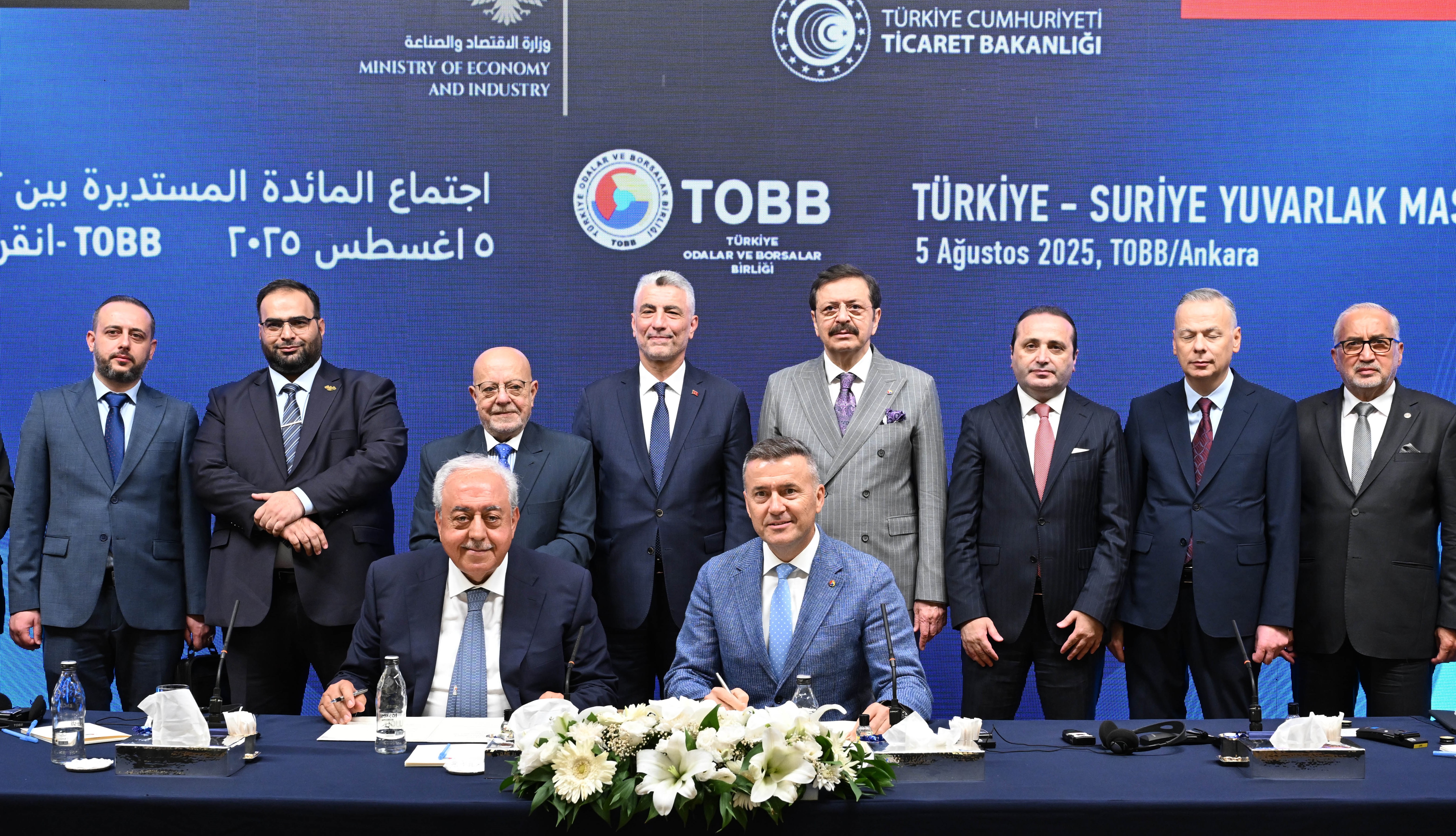 Mersin Ticaret ve Sanayi Odası (MTSO) Yönetim Kurulu Başkanı Hakan Sefa Çakır, Türkiye Odalar ve Borsalar Birliği (TOBB) Başkanı M. Rifat Hisarcıklıoğlu ev sahipliğinde, Ticaret Bakanı Prof. Dr. Ömer Bolat ve Suriye Ekonomi ve Sanayi Bakanı Nidal eş-Şaar’ın katılımıyla düzenlenen ‘Türkiye-Suriye Yuvarlak Masa Toplantısı’na katıldı. Türkiye ve Suriye iş dünyası temsilcilerinin hazır bulunduğu toplantıda iki ülke ticari ilişkilerinin geliştirilmesi, yatırımların artırılması, Suriye’nin yeniden inşası sürecinde işbirliğinin güçlendirilmesi konularını ele alındı. Toplantı sonunda MTSO ile Lazkiye Ticaret Odası arasında işbirliği protokolü imzalandı. İmzayı Odalar adına Yönetim Kurulu Başkanları Hakan Sefa Çakır ile Anas Dip Joud attı.